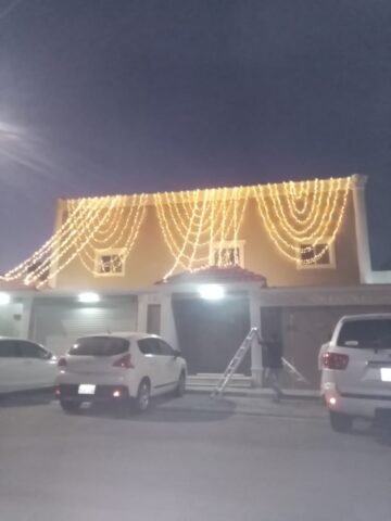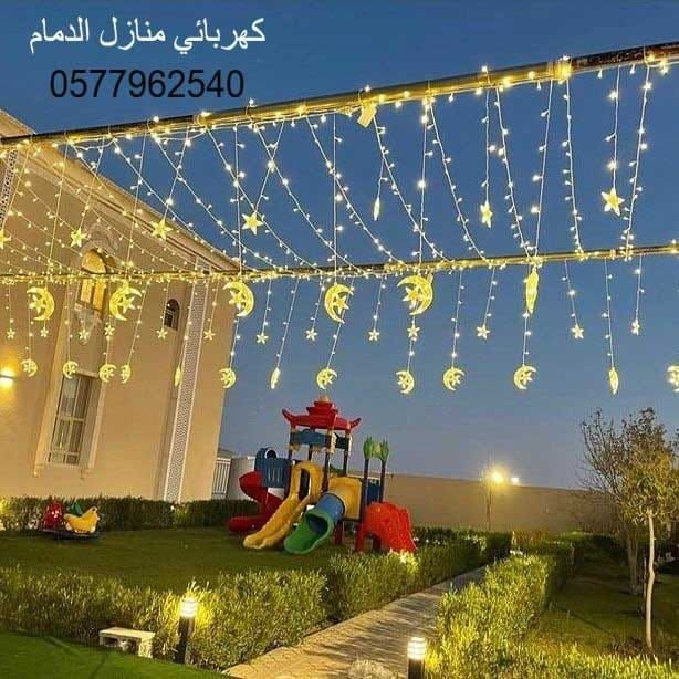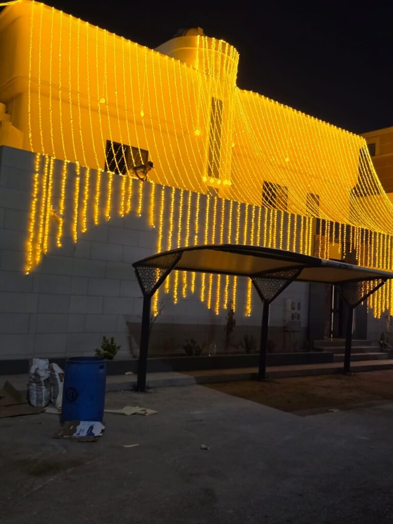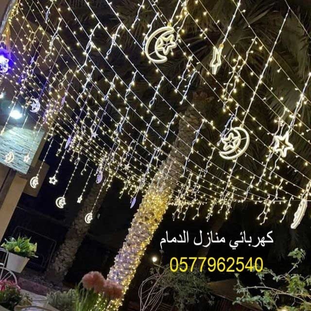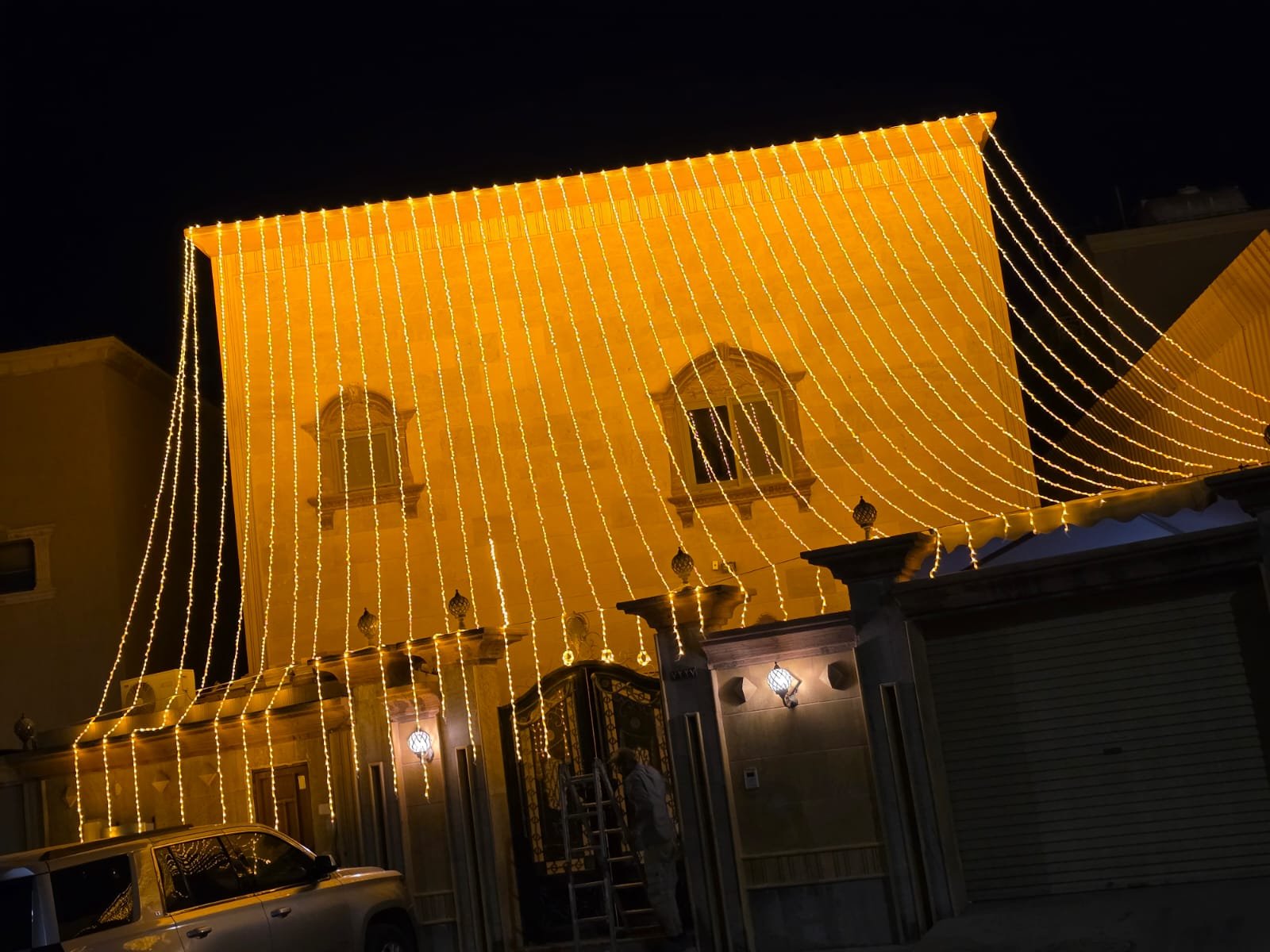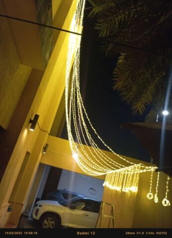 تركيب عقود إنارة شجرية + إضاءات LED مخفية + تنسيق ديكور رمضاني مميز.